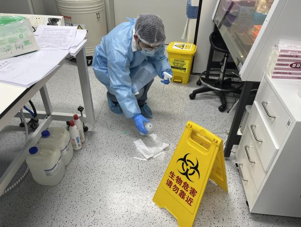 演练开始前,在EHS处王东鸣处长的指导下,负责人刘俊林根据此次演练制作的详细演练流程,进行了动员部署并向参加演练的所有人员讲解了生物安全相关制度、生物安全基本操作规程和防护用品穿戴等内容;胡素文安全员针对本次演练过程中可能出现的问题,提前为实验室人员准备了相应的应急预案和防护用品等。